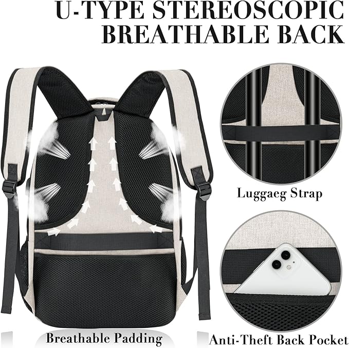 Backpack for Women and Men, Extra Large School Backpacks for Teens, Water Resistant Back Pack with USB Charging Port Fits 17 Inch Laptop, Business Anti Theft Sturdy Computer Bag Gifts, Beige