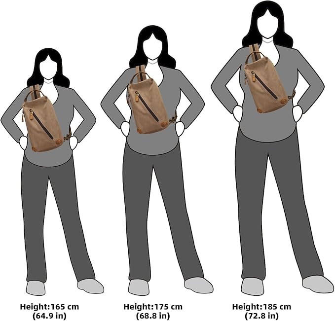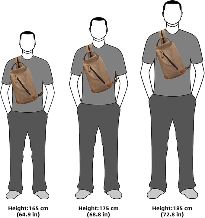 - [Compact yet Spacious] Exterior: 1 front zipper pocket and 1 zipper pocket on side and 1 buckle pocket on back; Interior: 1 main large compartment. Versatile canvas crossbody backpack has plenty of rooms for gadgets, wallet, umbrella, sunglasses and water bottle, etc. Easy access to small items, perfect for daily use or as a carry on luggage.