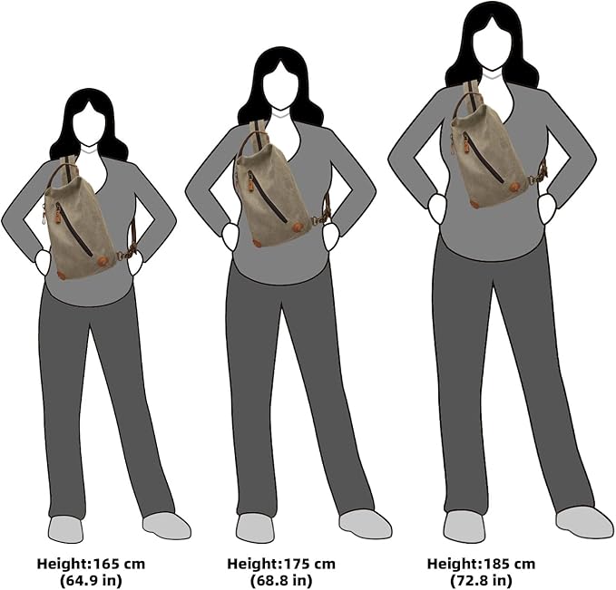 - [Compact yet Spacious] Exterior: 1 front zipper pocket and 1 zipper pocket on side and 1 buckle pocket on back; Interior: 1 main large compartment. Versatile canvas crossbody backpack has plenty of rooms for gadgets, wallet, umbrella, sunglasses and water bottle, etc. Easy access to small items, perfect for daily use or as a carry on luggage.