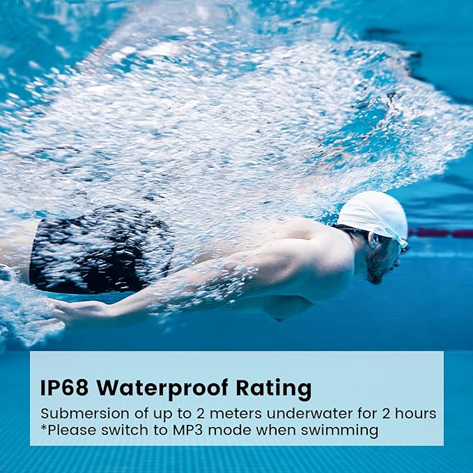 - Fully IP68 Waterproof: With an IP68 rating, these bluetooth headphones withstand being submerged 2 meters underwater for 2 hours. Whether swimming or running in the rain, the Run Plus won't let you down. (Tips:Please ensure both your hands and the product are dry for optimal performance. Wet conditions may cause operation to fail.)