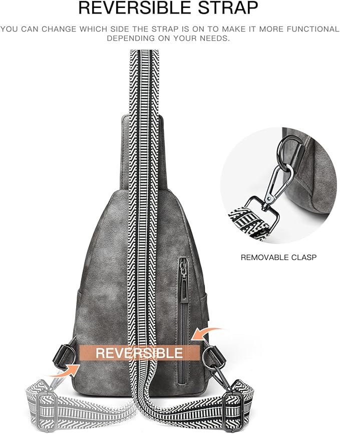 7L Sling Bag For Women Faux Leather Anti Theft Small Casual Daypack Backpack Fanny Pack Crossbody Chest Bags Purse Waterproof Dark Grey