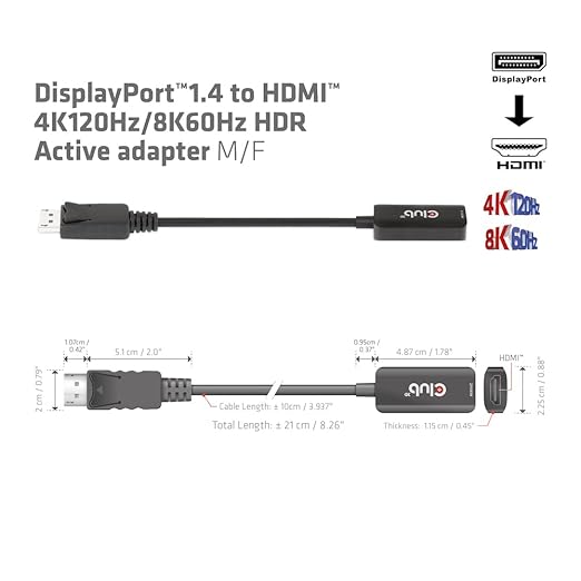 - COMPATIBILITY: The Club 3D CAC-1088 DisplayPort to HDMI adapter offers unparalleled compatibility, enabling users to connect to any HDMI 4K120Hz/8K60Hz ready display with No External Power Needed