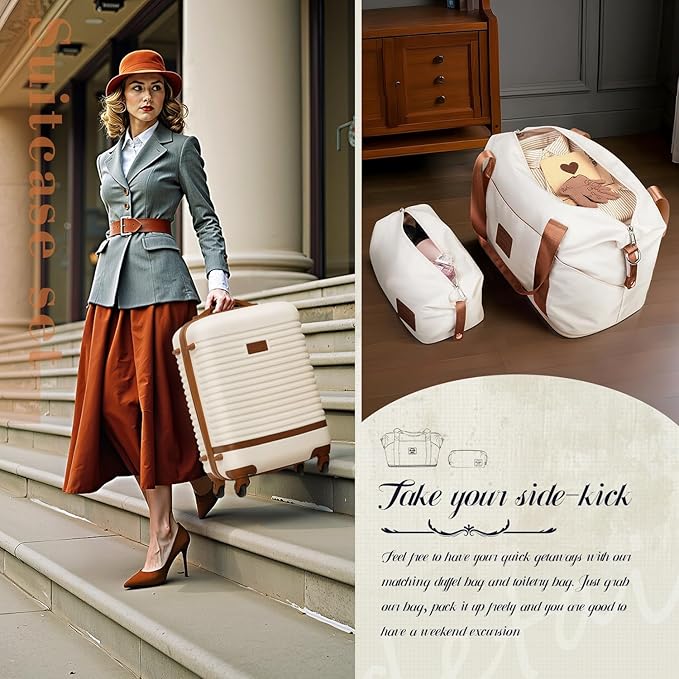 - Five piece set offers a 20’’ luggage, a 24’’ luggage, a 28’’ luggage, a weekender travel bag and a toiletry bag. Three piece sets offer two options. Option A includes a 20’’ luggage, a travel duffel bag and a toiletry bag. Option B includes a 20’’ luggage, a backpack and a toiletry bag.