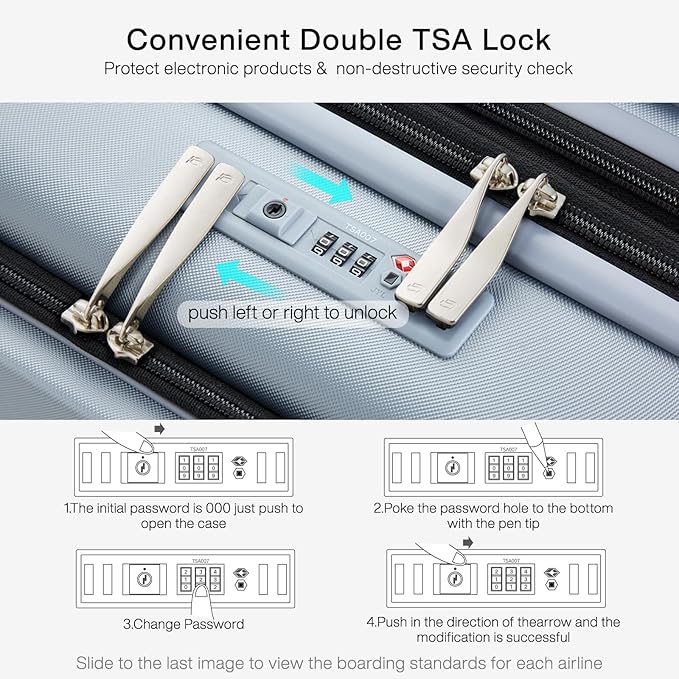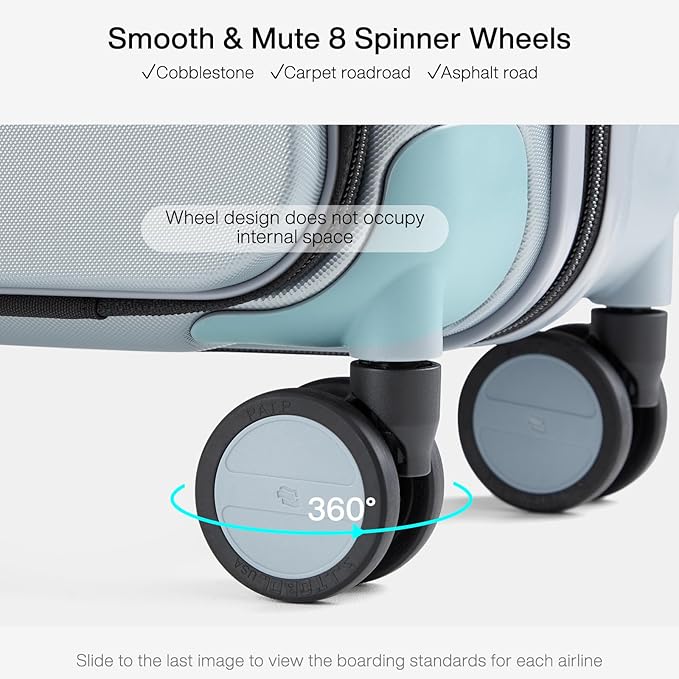 - 【Travel locks and spinner wheels】The travel approved carry on luggage can protect the security of electronic products and undergo non-destructive safety checks, making it more convenient and secure; The hard sided luggage with spinner wheels with rotating wheels that are very durable, quiet, and have strong load-bearing capacity. It can be easily operated on different roads such as cobblestone and carpet roads.