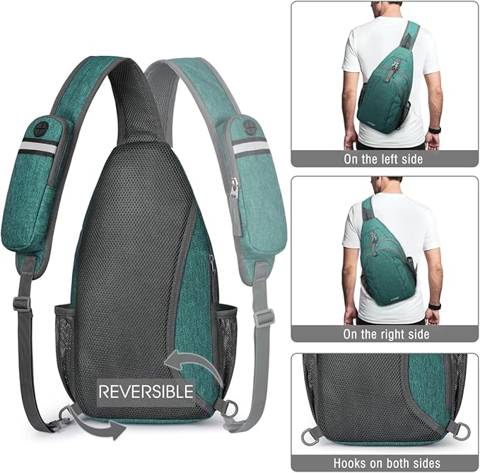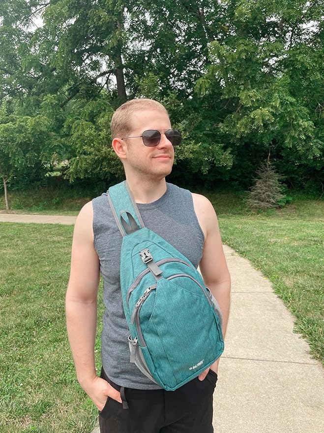 G4Free Sling Bag RFID Blocking Sling Backpack Crossbody Chest Bag Daypack for Hiking Travel(Dark Green)