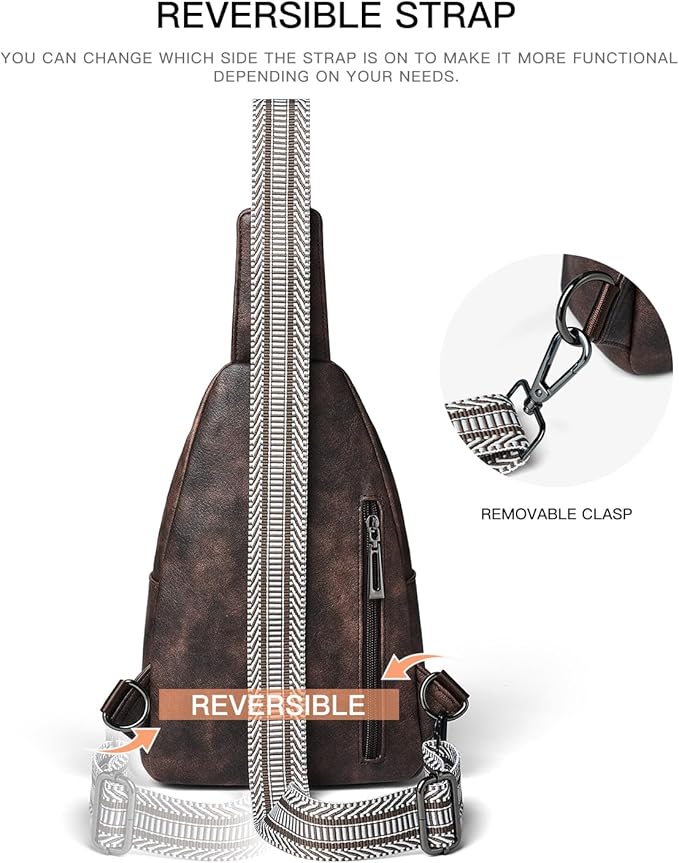 7L Sling Bag For Women Faux Leather Anti Theft Small Casual Daypack Backpack Fanny Pack Crossbody Chest Bags Purse Waterproof Coffee Color