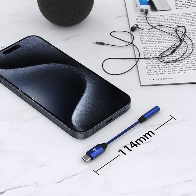 Stouchi USB C to 3.5mm Female Adapter, Type C Headphone Audio Jack Cable Cord Hi-Fi Dongle for Pixel 7 6a, Samsung Galaxy S22 S21 Ultra Z Flip Note20,2022 iPad Pro -Blue