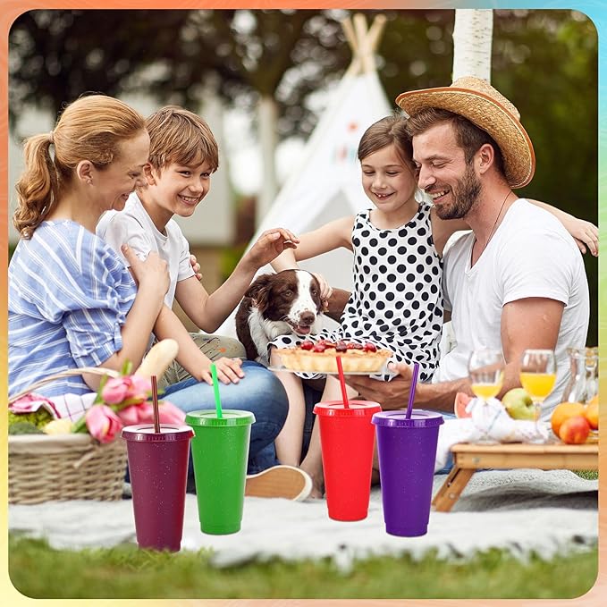 Honeydak 100 Pack Tumbler with Straw and Lid Bulk Glitter Plastic Cups Water Bottle Iced Coffee Travel Mug Reusable Party Favor Cups for Birthdays travel 24-27 oz (Vintage Color)