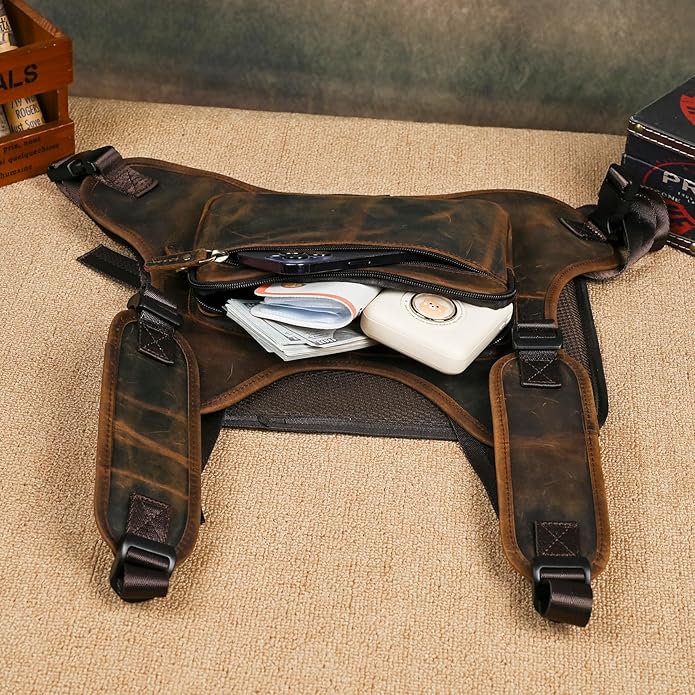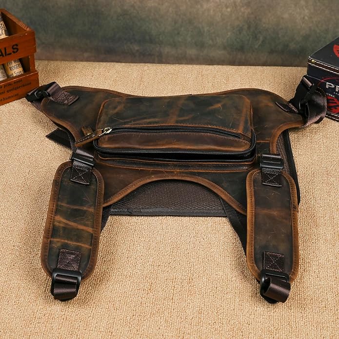 - 【Top Quality Material】This chest bag is made of top quality genuine crazy horse leather trim.The premium quality ensure the long lasting durability. crafted with a tight double-knit weave, it's strong, hard-wearing, scratch-resistant. The crazy horse leather is made of high-end top layer cowhide material, with a thickness of 2.5mm, which is solid and durable.And the quality solid hardware won’t gather rust easily.