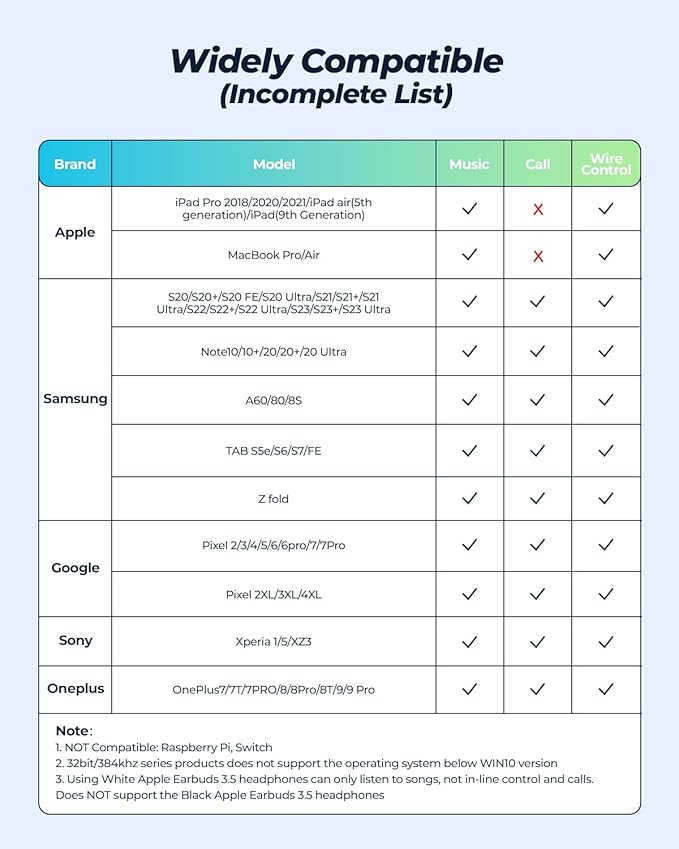 - Wide Compatibility: Type C headphone adapter is compatible with most Type C devices, compatible with iPhone 17/iPhone 17 Air/iPhone 17 Pro/iPhone 17 Pro Max, iPhone 16 Pro Max/16 Pro/16 Plus/16, iPhone 15 Pro Max/15 Pro/15 Plus/15, iPad mini 6, iPad Pro 2022 2021, iPad 10, iPad Air 4/5, Samsung Galaxy S23 Ultra/S23/S23+/S22/S22 Ultra/S22+/S21 Ultra/S21+/S21 /S20 FE/S20 Plus/S20 Ultra/S10 Lite, Google Pixel 6/6 Pro/7/7 Pro, Nord 2/9 Pro/8T/7, MacBook Pro, PS5, etc.