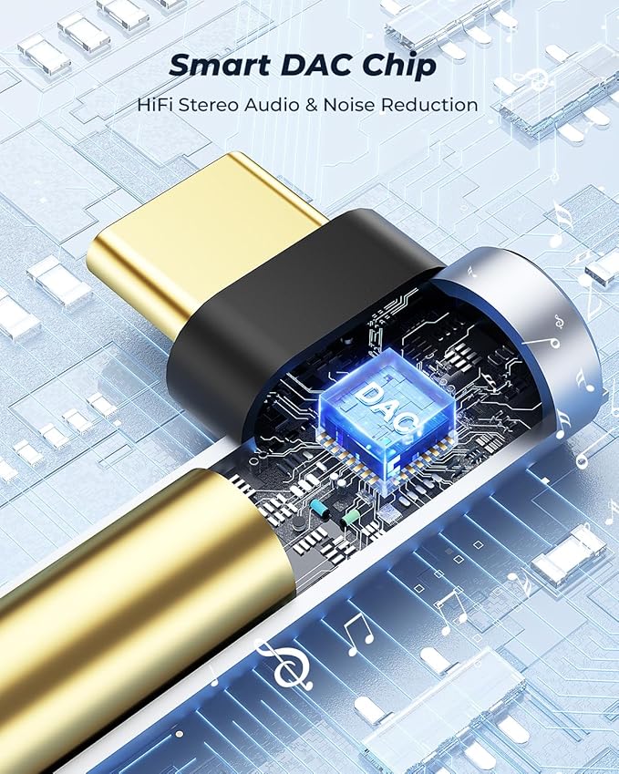 - Hi-Fi Sound Quality: The USB C to 3.5mm uses a smart DAC chip that supports up to 16Bit/48Khz audio sampling rate. the DAC chip also converts digital audio signals to analog audio signals, giving you less loss and HiFi stereo audio.