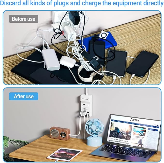 - 【Widely applicable】: USB multi port charger is compatible with most USB charging devices, mobile phones, tablets, cameras, E-reader, Bluetooth headsets, power bank, USB fans, MP3/MP4 players, and products with USB ports. USB charging stations are very suitable for travel, home, and office use.