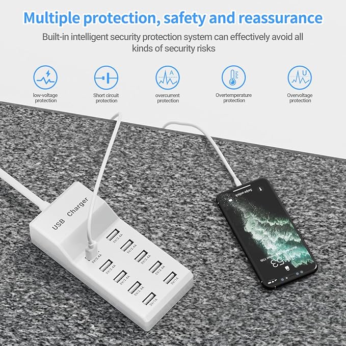 - 【 10 USB ports 】: 10 ports that can charge multiple devices simultaneously. We provide you with different charging needs. This USB charging station, suitable for various devices, has a compact structure, saves space, and is easy to carry and use. Small size, large capacity!