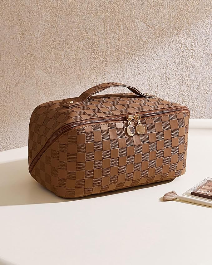 EACHY Travel Makeup Bag,Large Capacity Cosmetic Bags for Women,Waterproof Portable Pouch Open Flat Toiletry Bag Pattern Makeup Bag