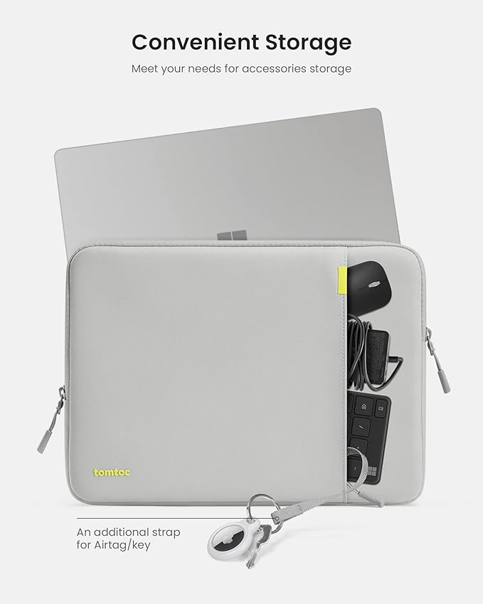 - Military-Grade Protection: To combat the toughest situations: from falls to shocks to vibrations, tomtoc proposed the concept of 360 protection and designed the laptop sleeve with CornerArmor Technology, high resilience edges, and high-density soft padding. It passed the Military-Standard-Drop-Test while also maintaining a sleek design