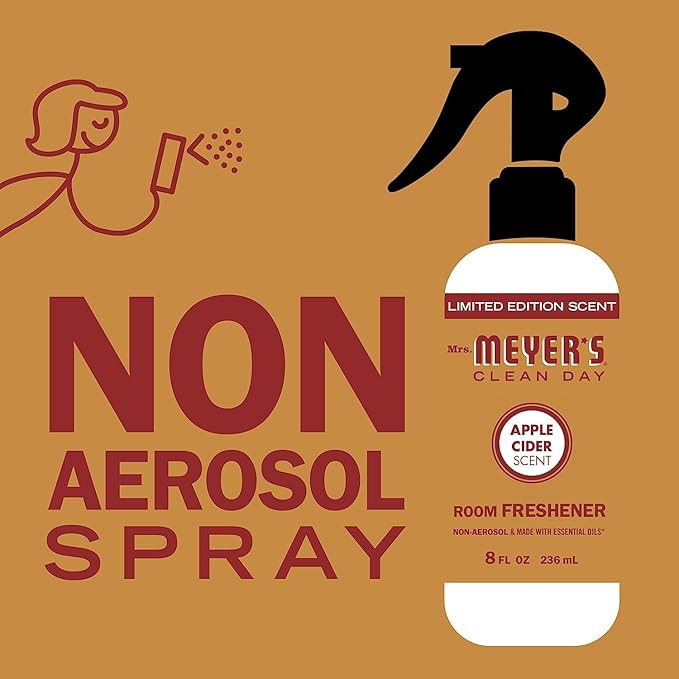 - Enjoy the comforting scents of autumn with the Mrs. Meyer’s Clean Day Variety Pack Room Freshener, featuring Apple Cider and Mum fragrances in two 8 fl oz. bottles.