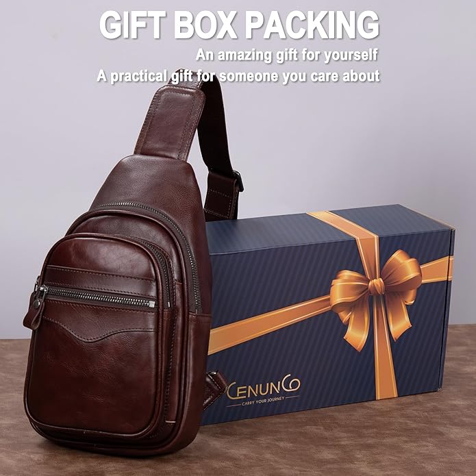 - GENUINE LEATHER SLING CHEST BAG – This sling chest bag for men and women was made of genuine leather, combine with comfortable cotton lining and heavy duty metal zippers, this leather bag is suitable for hiking, cycling, and daily travel