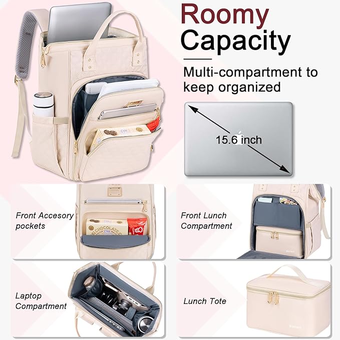 Weitars Lunch Backpack For Women,15.6 Inch Laptop Backpacks For Womens Back pack, Travel Backpacks,Work Back packs For Women (Beige)