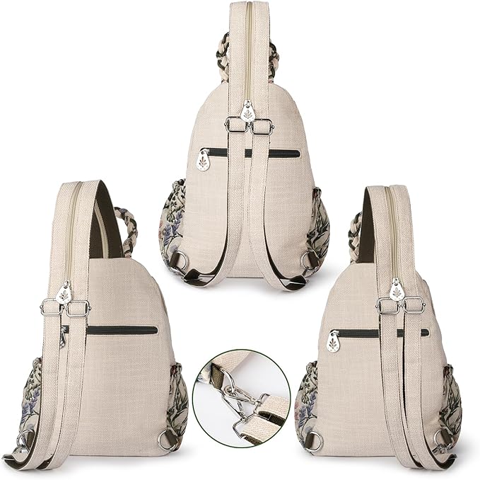 - [LIGHTWEIGHT & ARTISTIC DESIGN] Made of durable, lightweight, water-resistant canvas material with top-quality zippers and brass fittings, the small crossbody backpack dimension: 12.5 X 10 X 6 inches / weights 1.4lb, very portable.