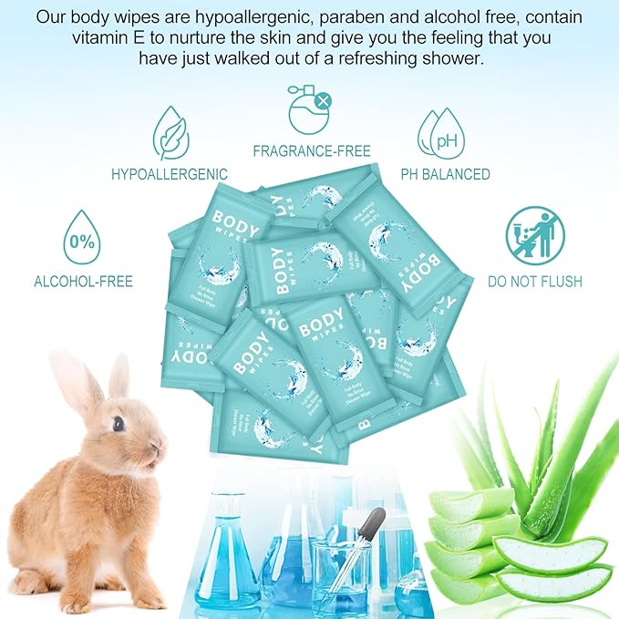 - Suitable Size: each pack of shower wipes measures approximately 3.15 x 6.69 inches/ 8 x 17 cm, small and lightweight, can be easily carried in your pocket, toiletry bag, purse, gym bag, yoga bag, travel bag or backpack without takes up too much space; Each wipe measures approximately 7.09 x 9.84 inches/ 18 x 25 cm when unfolded, large enough to wipe your face, hands, arms, armpits, and other body parts