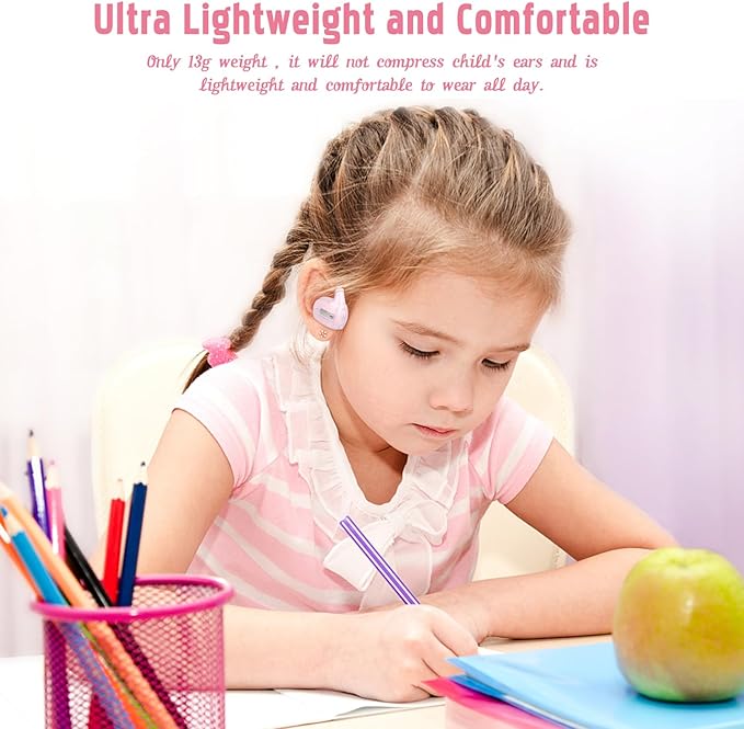 - [Ultra Lightweight and Comfortable] Conduction headphones weight just 13g (0.45 oz) compact and ultra-lightweight, it does not compress the child's ears, comfortable to wear all day without ear pain. Headphones for kids is made of 360° bendable and non-deformable memory aluminum, so you can easily put it in your school bag and take it to school. It is your best partner in learning!