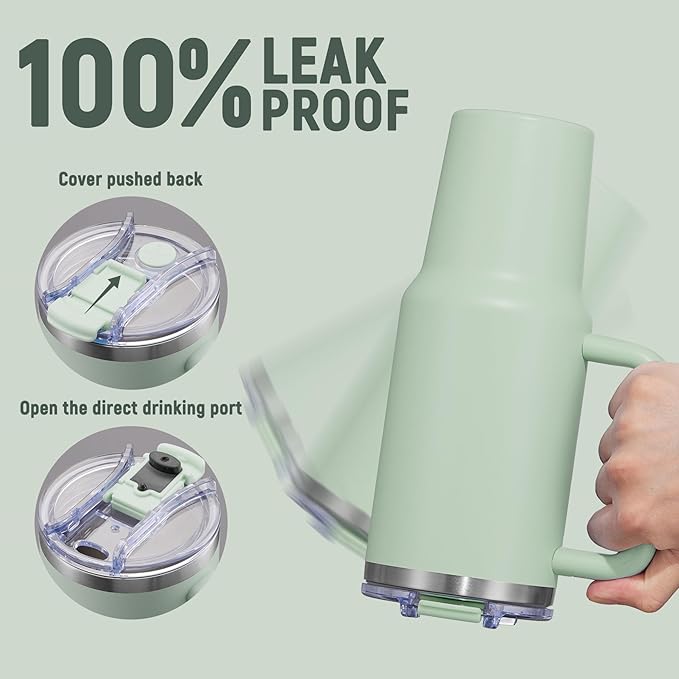 40 oz Tumbler with Handle and Straw Lid,Insulated Reusable Stainless Steel Water Bottle Travel Mug,Cupholder Friendly Double Wall Vacuum Sealed Cup (Light Green)