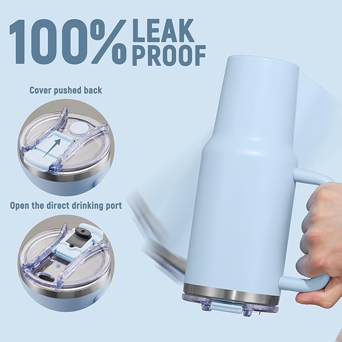 40 oz Tumbler with Handle and Straw Lid,Insulated Reusable Stainless Steel Water Bottle Travel Mug,Cupholder Friendly Double Wall Vacuum Sealed Cup (Sky Blue)