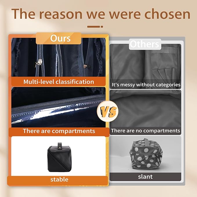 - Friendly 180° Flat-Open Design: Clear at a glance, the large opening design allows you to quickly find your items. There are elastic pockets on both sides of the interior, and the middle fixed storage partition design. Stay away from messy life, you will never get tired of having it