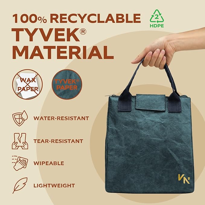 - 🌿 Lightweight & Eco-Friendly Tyvek Exterior - Made from sustainable Tyvek, this women's insulated lunch bag is ultra-light and durable. A great alternative to bulky leather lunch bags for women or plastic cooler bags insulated options. Whether you're a minimalist, or a teacher, this is the lunch tote bag for women that supports your lifestyle and the planet.