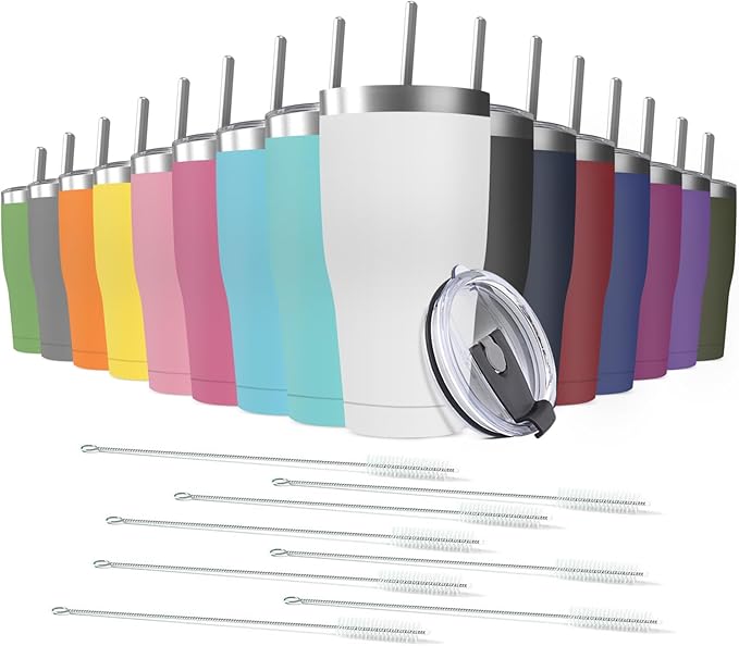 16 Pack 20oz Stainless Steel Tumblers Bulk Reusable Travel Mugs with Lid, Double Wall Powder Coated Coffe Cup for Home, Office, Outdoor Suitable for Vehicle Cup Holders