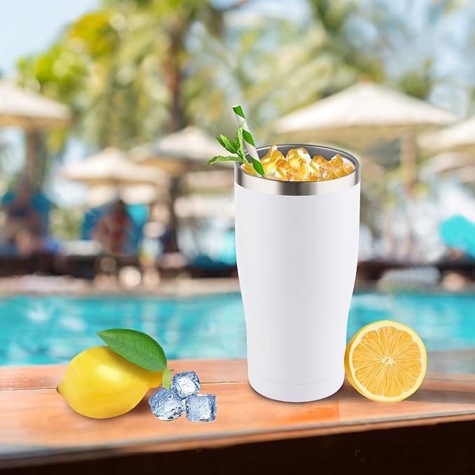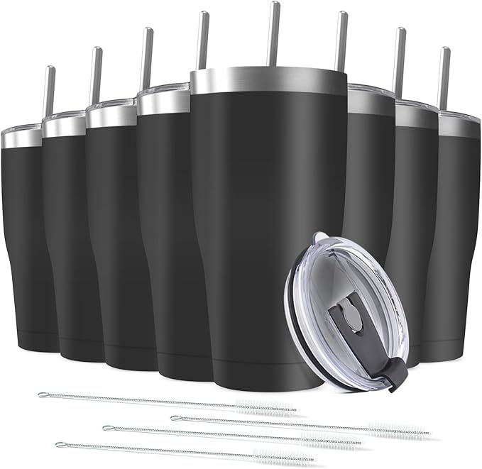 8 Pack 20oz Stainless Steel Tumblers Bulk Reusable Travel Mugs with Lid, Double Wall Powder Coated Coffe Cup for Home, Office, Outdoor Suitable for Vehicle Cup Holders