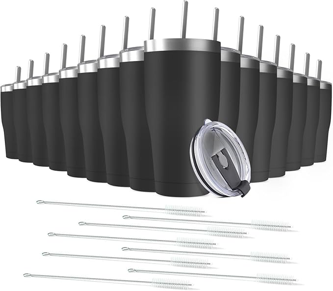 16 Pack 20oz Stainless Steel Tumblers Bulk Reusable Travel Mugs with Lid, Double Wall Powder Coated Coffe Cup for Home, Office, Outdoor Suitable for Vehicle Cup Holders