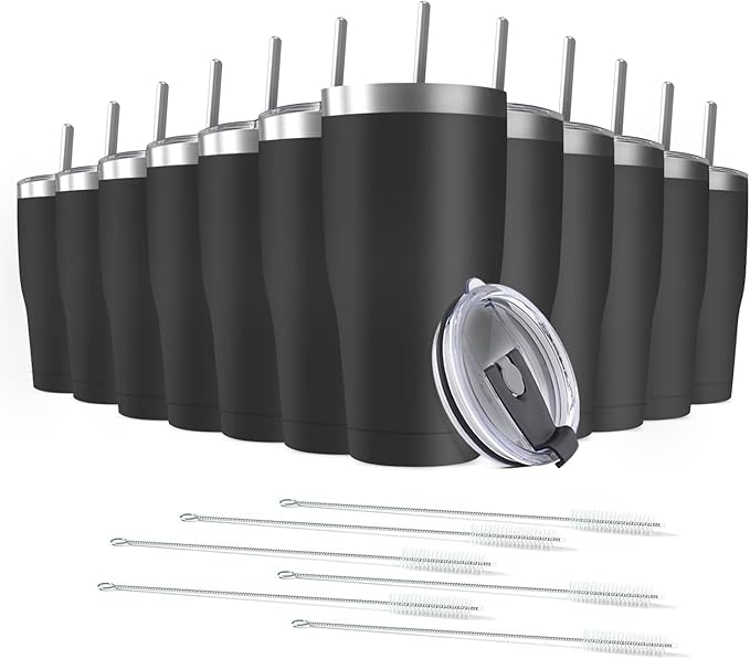 12 Pack 20oz Stainless Steel Tumblers Bulk Reusable Travel Mugs with Lid, Double Wall Powder Coated Coffe Cup for Home, Office, Outdoor Suitable for Vehicle Cup Holders