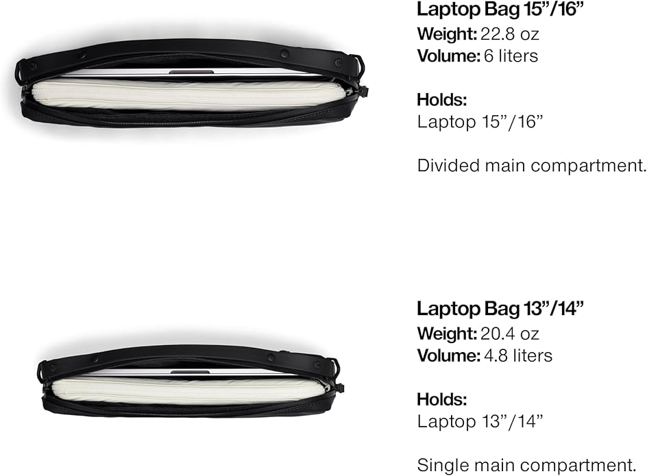 - WATERPROOF LAPTOP BAG: Laptop Bag is for anyone looking for the clean aesthetic of a 13” or 14” laptop sleeve with additional room, functionality and padding. This waterproof laptop bag, which may fit some 14” devices, features a divided main compartment for easy organization.