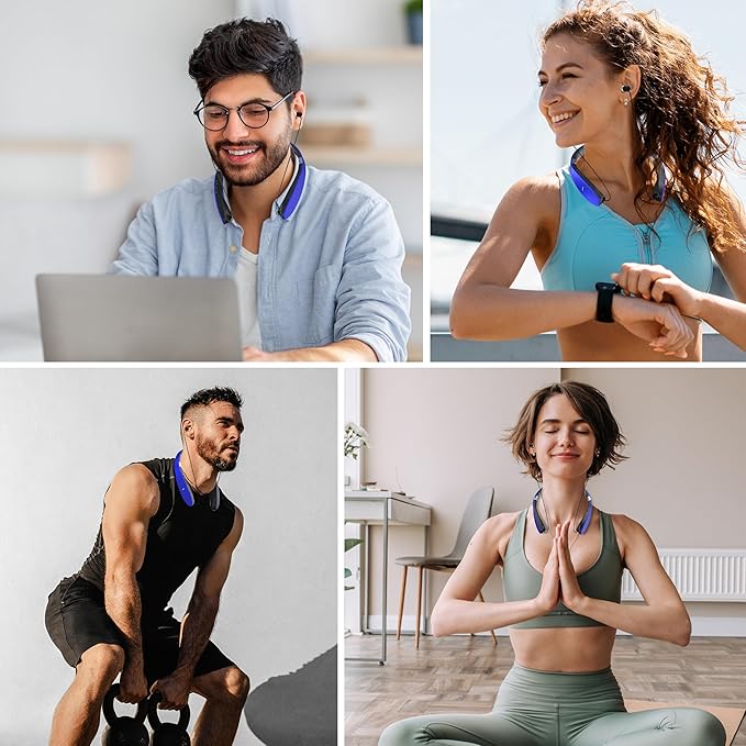 AMORNO Foldable Bluetooth Headphones Wireless Neckband Headset with Retractable Earbuds, Sports Sweatproof Noise Cancelling Stereo Earphones with Mic (Blue)