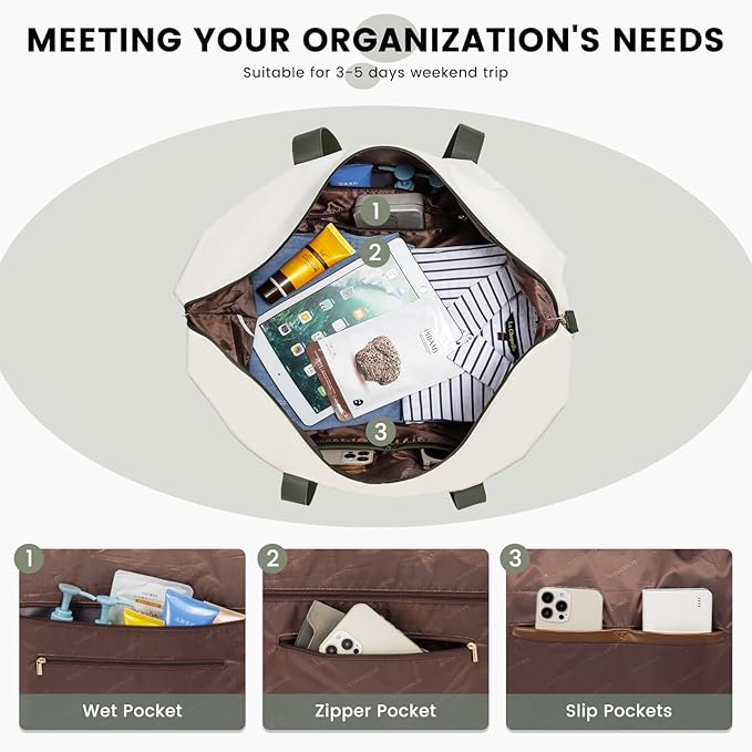 - 【Organized Packing】: Featuring multiple compartments and pockets, this weekender bag ensures your belongings stay organized, making it easy for you to find what you need quickly and efficiently