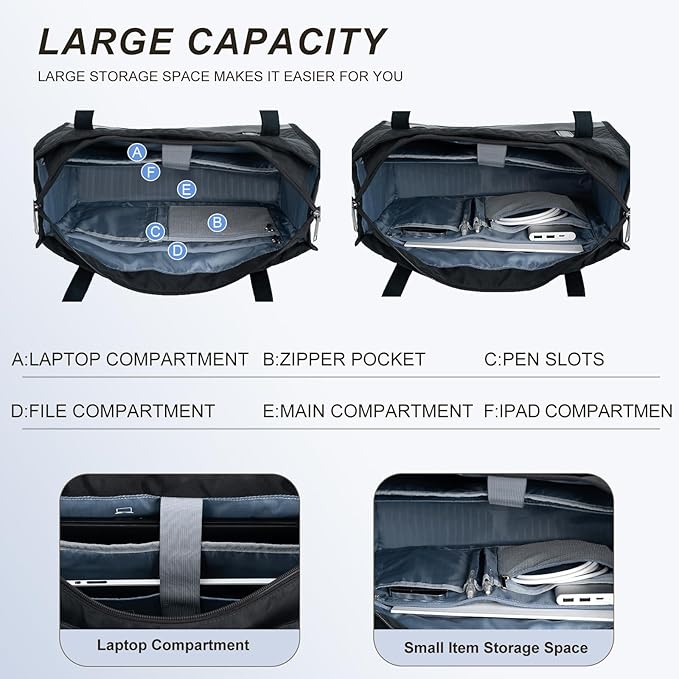 - Large Capacity Design: The laptop tote bag for women divied into three parts, A padded pocket for 15.6-inch laptops, and an iPad pocket provides a thick padded section. The padded design can protect your laptop from accidental impacts and scratches, and the large opening design makes it easier to place things in the handbag. The backpack features a large zippered pocket for personal items, a sliding pocket, and a pen pocket for storing your ID card, wallet, and more.