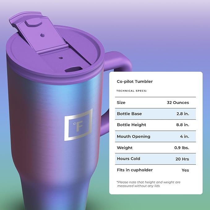IRON °FLASK Co-Pilot Insulated Mug w/Straw & Flip Cap Lids - Cup Holder Bottle for Hot, Cold Drink - Leak-Proof - Water, Coffee Portable Travel Mug - Aurora, 32 Oz