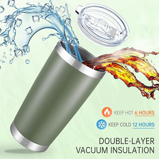 20 oz Tumblers Bulk Stainless Steel Tumbler with Lid Double Wall Vacuum Insulated Coffee Mug 20oz Powder Coated Cup for Hot and Cold Drinks, Army Green, 12 pack