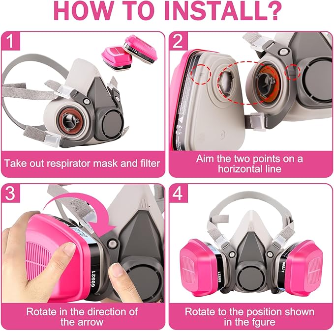 - [ 60921 Respirator Filters ] - the professional half face respirator use a dual filtration system ( filter cotton + activated carbon particles) to effectively block 97% of organic vapors/gases, pollen, dust and other particles in the air. providing efficient protection against chlorine gas, chlorine dioxide, hydrogen chloride, sulfur dioxide, hydrogen fluoride, hydrogen sulfide, ammonia, methylamine, formaldehyde, and various types of particulate matter.