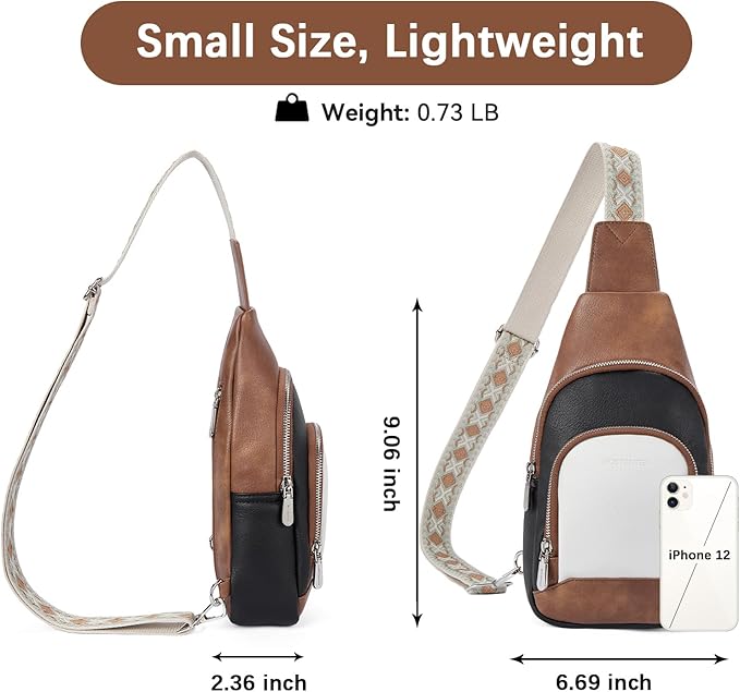 - Large Capacity, Stay Organized - This leather sling bag has 4 Zip pockets. The well-organized space accommodates your wallet, phone, sunscreen, cosmetics, keys, cards, and other necessary items. The five card slots provide convenient storage for your ID cards, credit cards, and transit cards, making them easily accessible