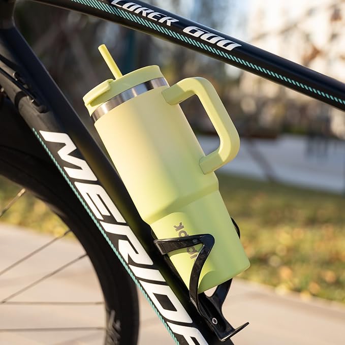 - Cupholder Friendly Travel Mugs With Handle: The Insulated Cups Has a Narrow Bottom And A Wide Mouth Fits Most Cup Holder In Car, With A Comfortable Ergonomic Silicone Handle And Two Reusable Straw To Use More Portable, You Can Stay Sipping From Your Essential Hydration Companion, Even On Your Busiest Days