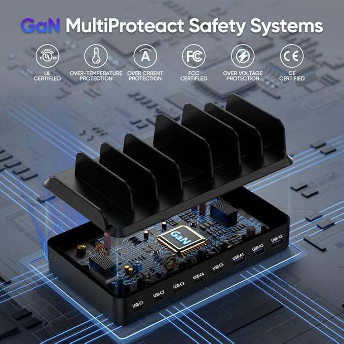 - 【What You Can Get】1-Lcssio Charging Station, 1- Power Cord, 6-Pack short mixed charging cables (2pc for iPhone & iPad, 2pc Type C, 1pc USB C, 1pc Micro B) for your daily use. Our usb c GaN charger station is equipped with enhanced protection: Flame Retardan Protection, Over-Current, Over-voltage, Overcharge, Overload, Overheat and Short circuit. The certification authority of our charging station is in line with all safety certificates, ensuring 100% for you and your device's protection.