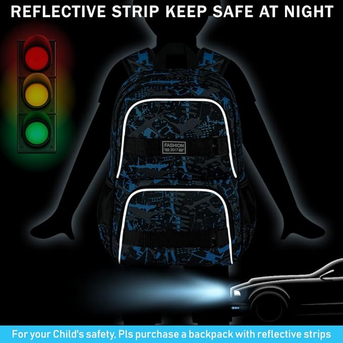 - Unique Style: This boys backpack comes with a stylish double front buckle design, you can hang dolls or hats to show your personality, equipped with cool reflective strips on the front and back for safety.