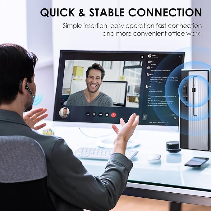 - USB Dongle & Bluetooth 5.3; The bluetooth headset for computer is equipped with the latest Bluetooth 5.3. It supports Bluetooth to connect two devices at a time, you can promptly answer calls from another phone through A6L when you you do something else, you will never miss a phone call. The wireless headset for computer comes with Dongle, it available to desktop computers. And if your device doesn’t have Bluetooth function, plug the dongle in USB port and it will automatically connect to A6L