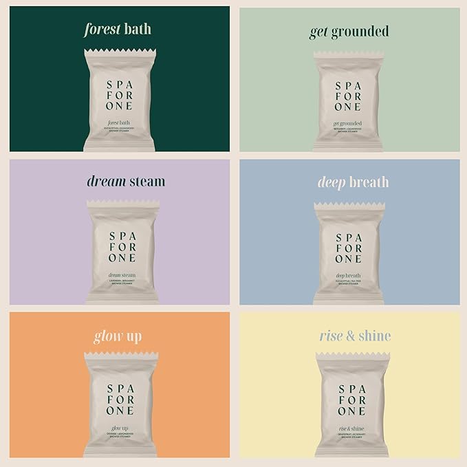 - Aromatherapy Benefits: Experience the soothing effects of Spa For One’s 6 essential scents, 1x Dream Steam, 1x Forest Bath, 1x Rise & Shine, 1x Deep Breath, 1x Get Grounded, and 1x Glow Up. Each shower bomb offers stress relief and relaxation, ideal for rejuvenating both mind and body.