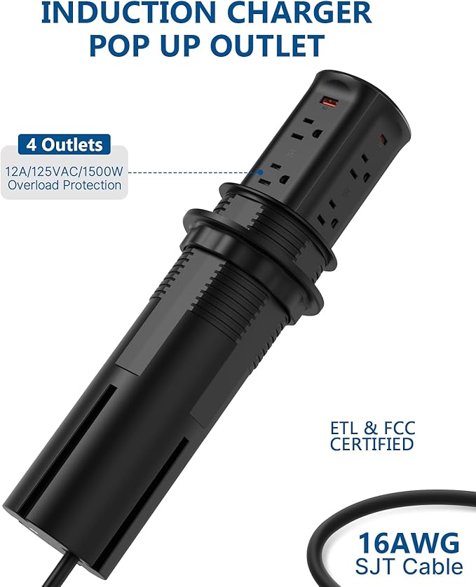 - Transform your kitchen counter or office desk instantly! Our pop-up countertop outlet , flush recessed design, blends seamlessly into any surface.