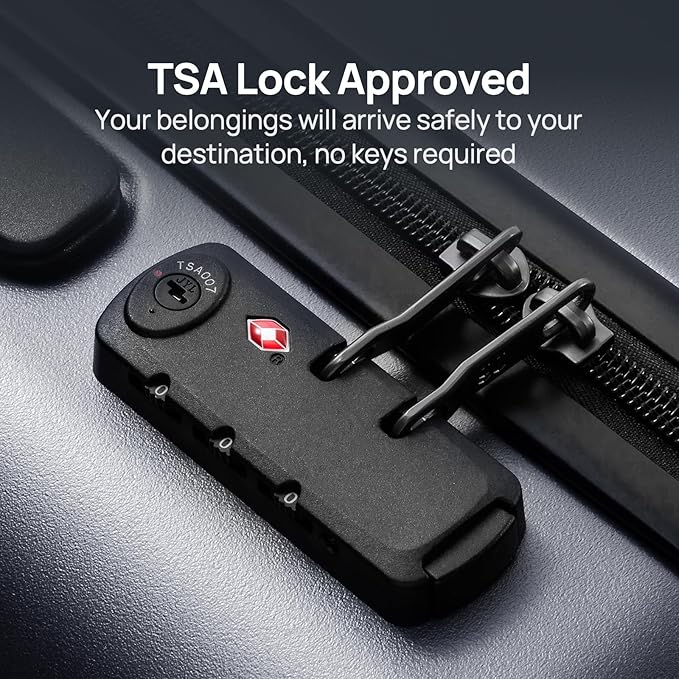 - 【TSA Lock Included】The built-in TSA-approved lock (default password: 0-0-0) ensures your belongings stay secure while allowing airport security to inspect your luggage without damage. Set your own password for added peace of mind.