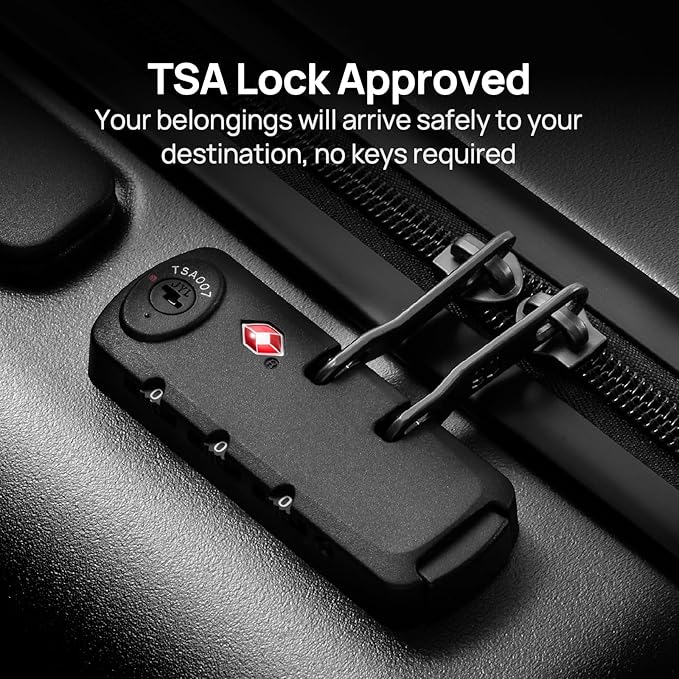 - 【TSA Lock Included】The built-in TSA-approved lock (default password: 0-0-0) ensures your belongings stay secure while allowing airport security to inspect your luggage without damage. Set your own password for added peace of mind.