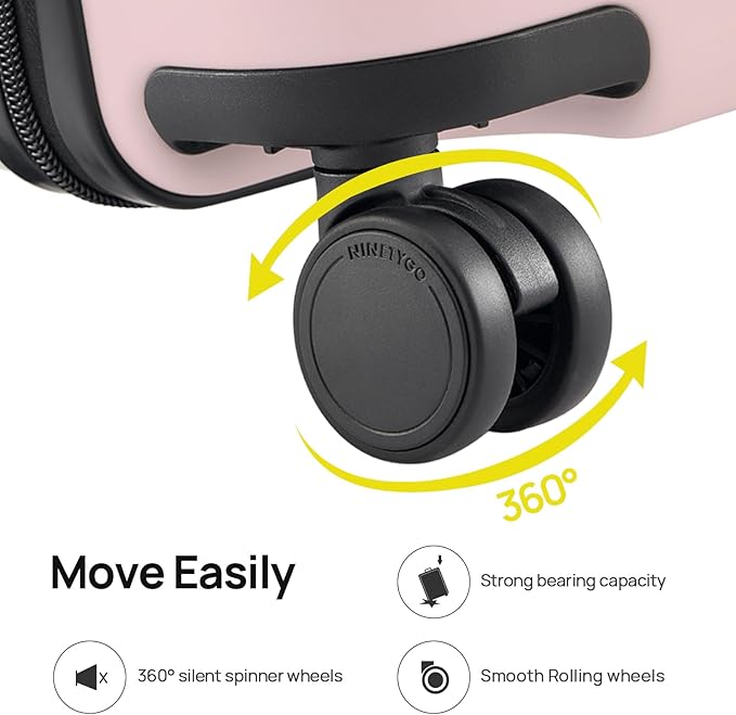 - 【Smooth Glide Wheels】Featuring 4 silent, double spinner wheels, this suitcase glides effortlessly through crowded airports and uneven surfaces. The smooth and quiet rolling ensures a stress-free travel experience, whether you're rushing to a gate or navigating city streets.